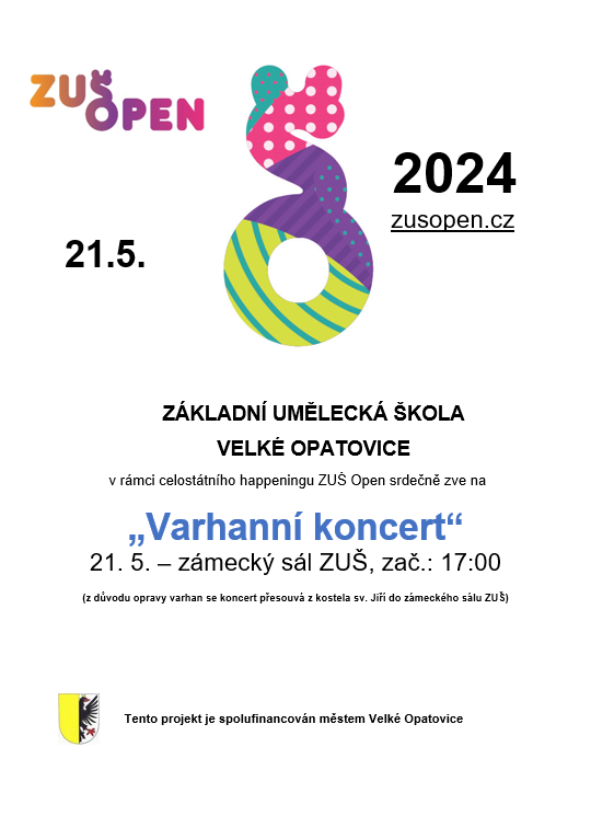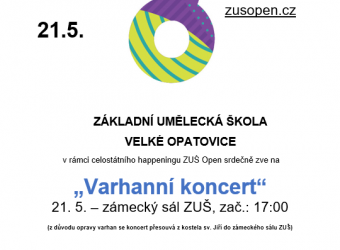 úterý 21. 5. 2024 – varhanní koncert, zámecký sál ZUŠ ve Velkých Opatovicích, zač.: 17:00