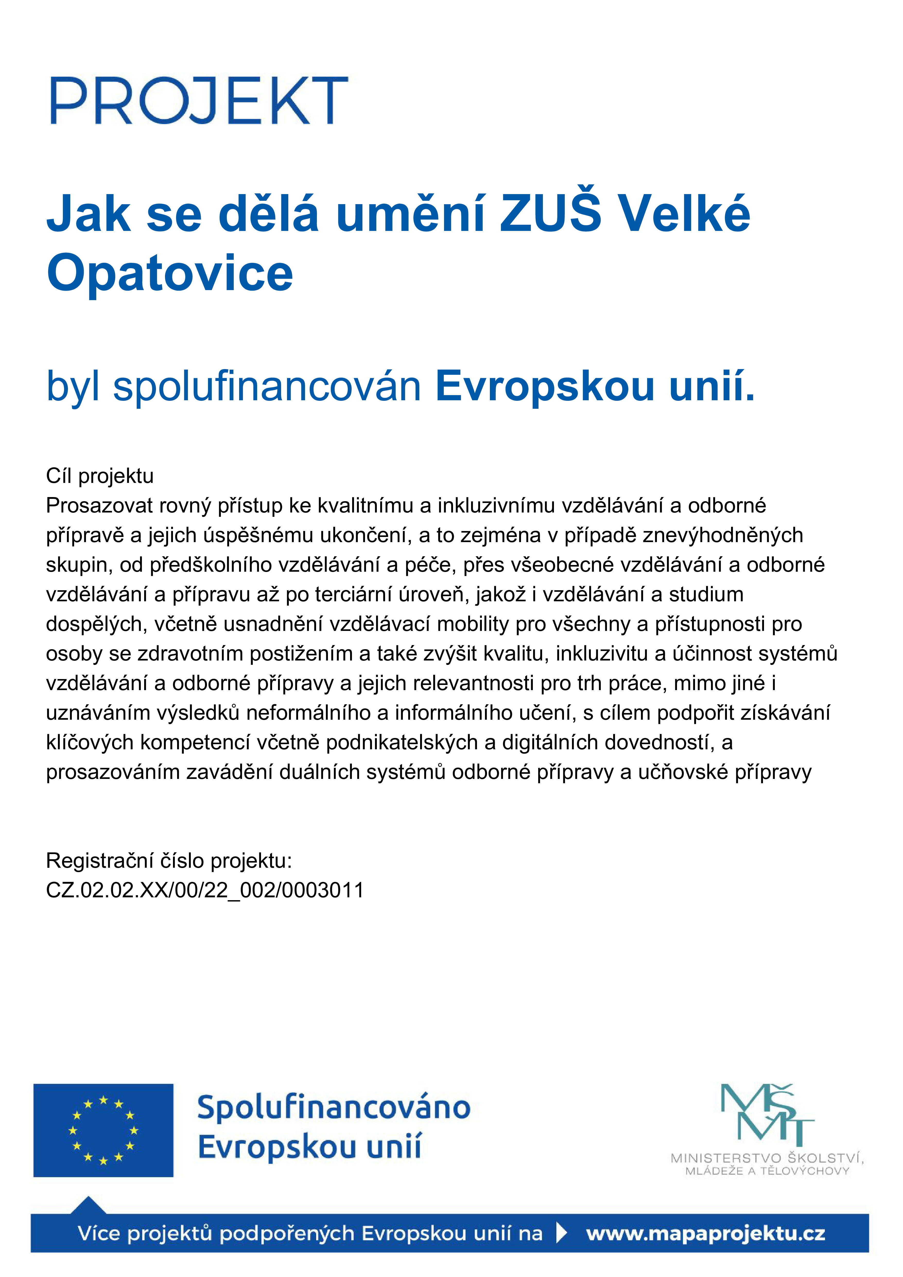 Základní umělecká škola Velké Opatovice se ve školním roce 2022/2023 zapojila do operačního programu Jan Ámos Komenský prostřednictvím projektu s názvem: